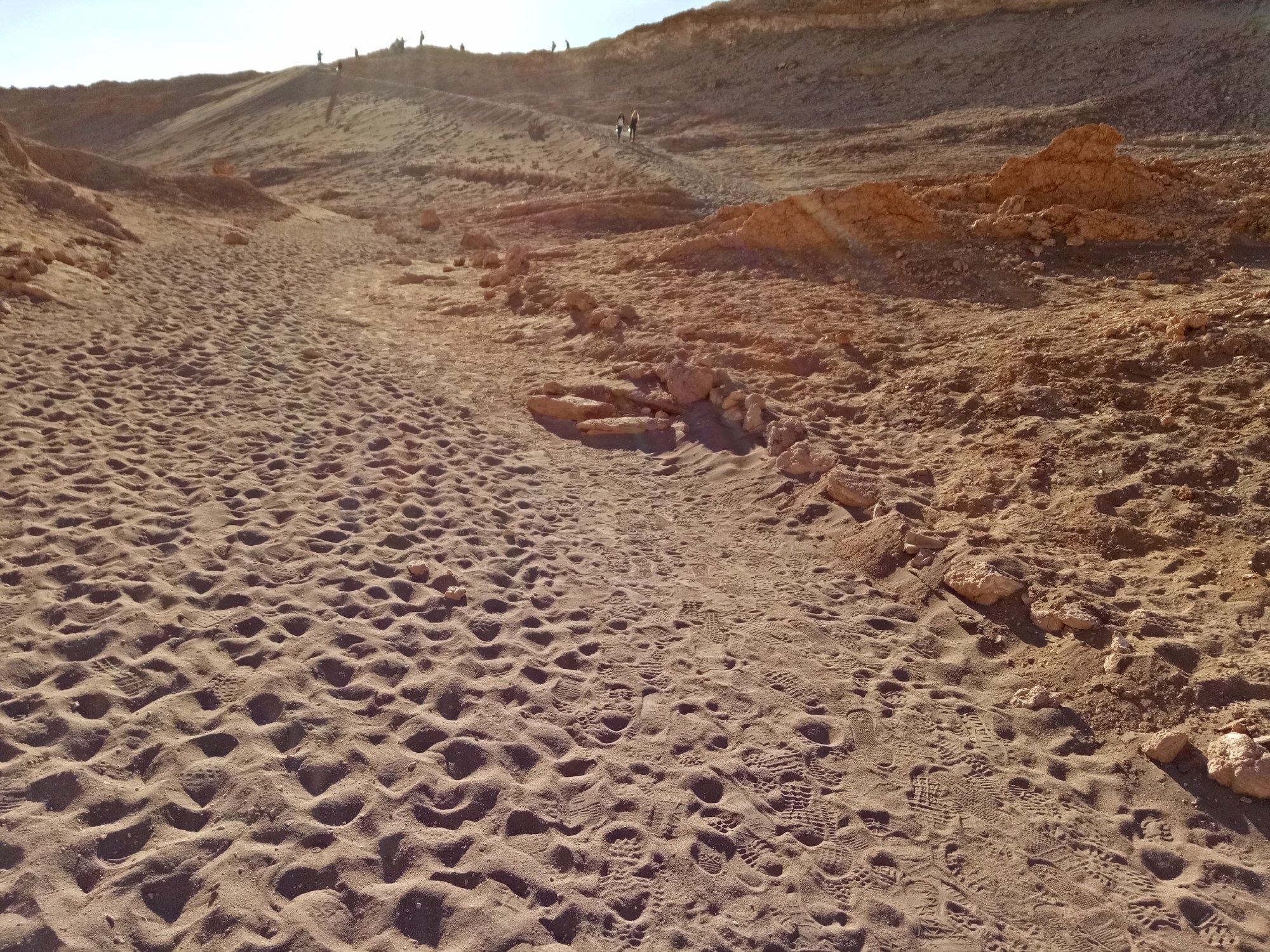 We start with a short trek through some canyons examining the salt formations within the rock. It feels like we are in a barren moonscape.